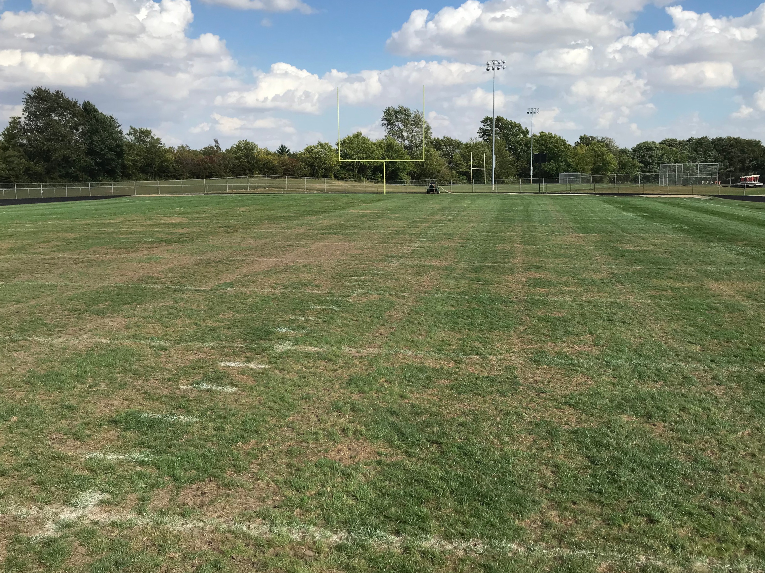 Our relationship with M-S High School began with deep aeration, spreading compost and overseeding the football field. We then solved standing water issues on the baseball field by cutting out the lip around the outfield rim, creating a symmetrical arc and relocating sprinklers. We now provide professional turf care for all athletic fields, including aeration, seeding, irrigation repair and fungicide application.