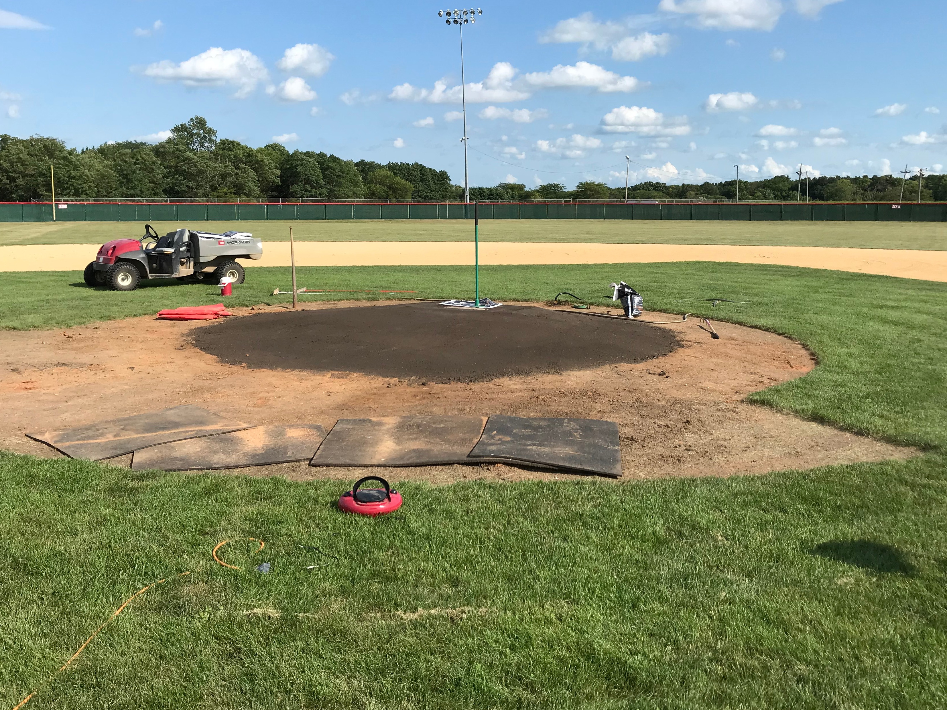 We established an annual maintenance program for all eight athletic fields and school grounds. Renovation projects included repairing the lip around the rim of the infield by adding 25 tons of infield mix and laser grading the entire skinned area to match the outfield surface. We also rebuilt the pitcher’s mound to specifications with professional mound clay, laser set the rubber and recreated the tabletop and slope.